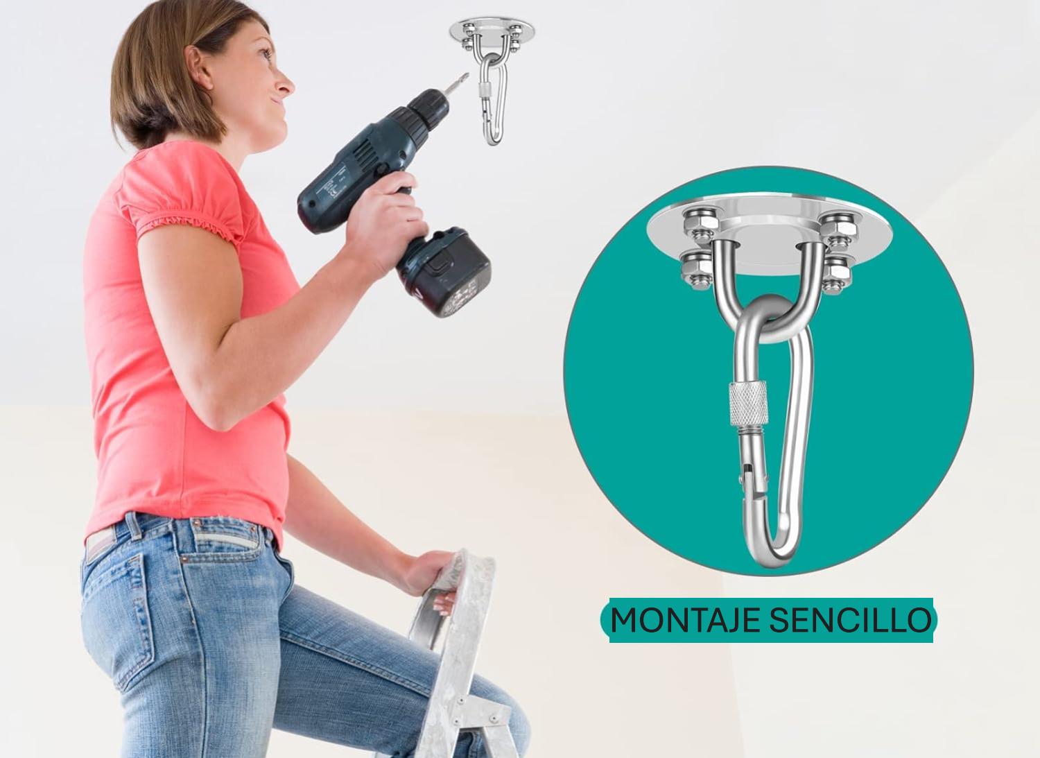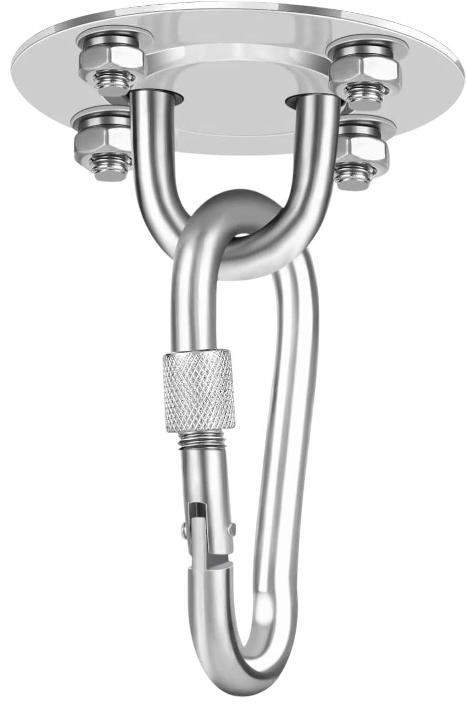 - Amplia aplicación: el soporte de techo de acero inoxidable es ideal para colgar sillas, hamacas, columpios de amor, sacos de boxeo, toallas, columpios, toallas de yoga, toldos, cuevas colgantes y asientos colgantes.