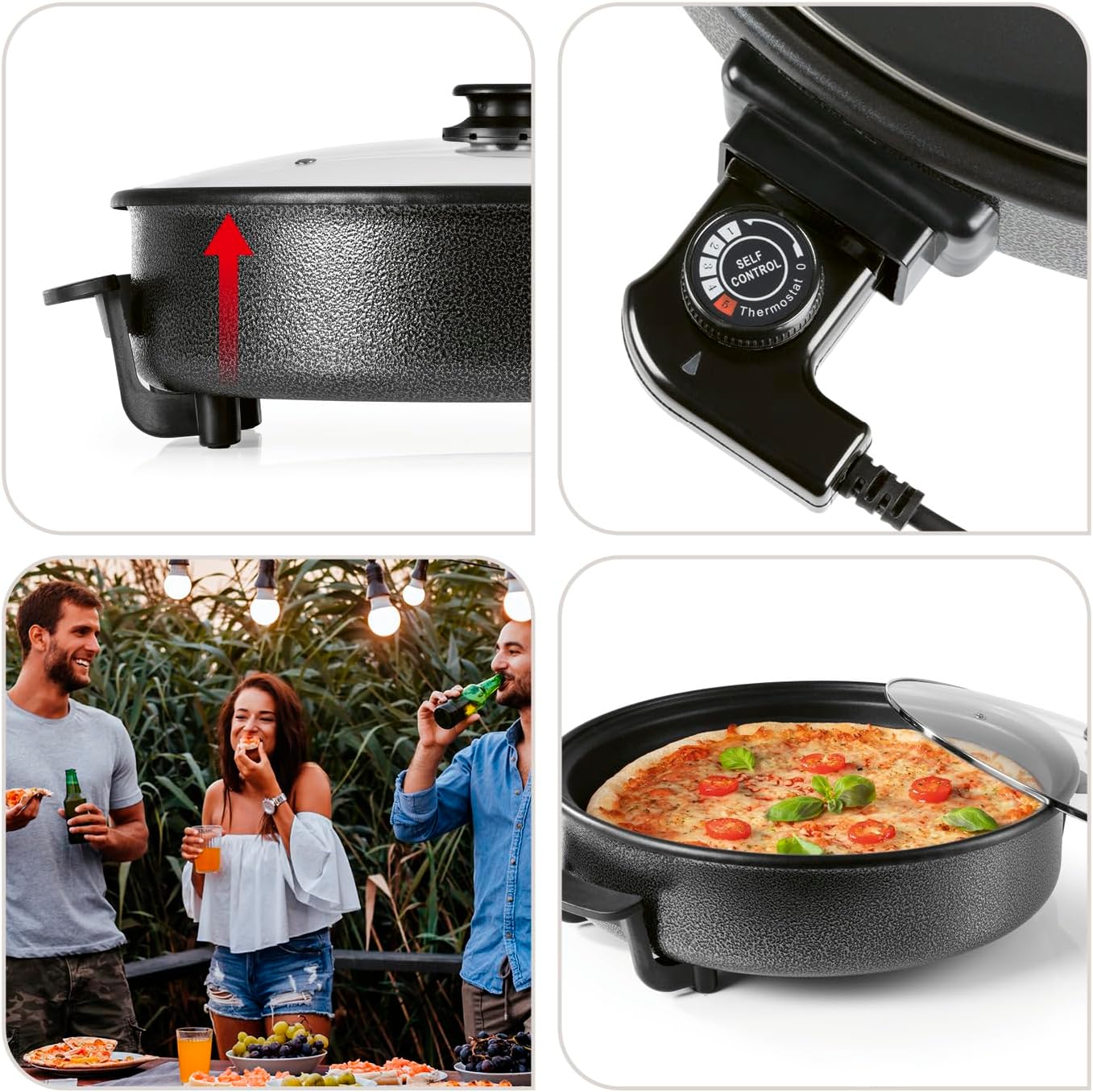Para pizzas caseras, freír, asar, cocinar , estofar, guisar, cocer.