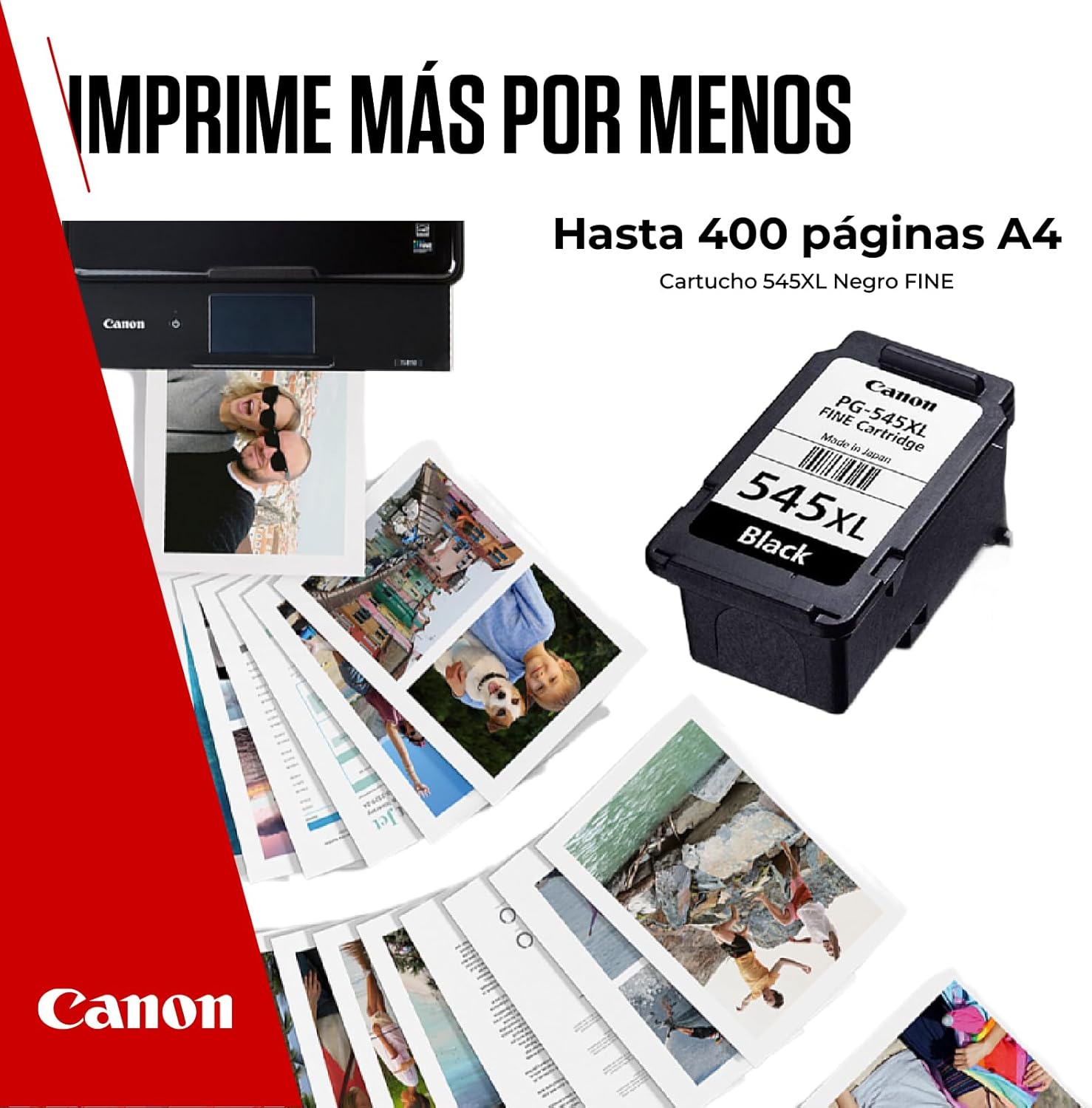 - TINTA CANON: Imprime documentos de hasta 400 páginas A4 con textos nítidos y duraderos: la tinta original de Canon proporciona impresiones de calidad constante el 100% del tiempo*.